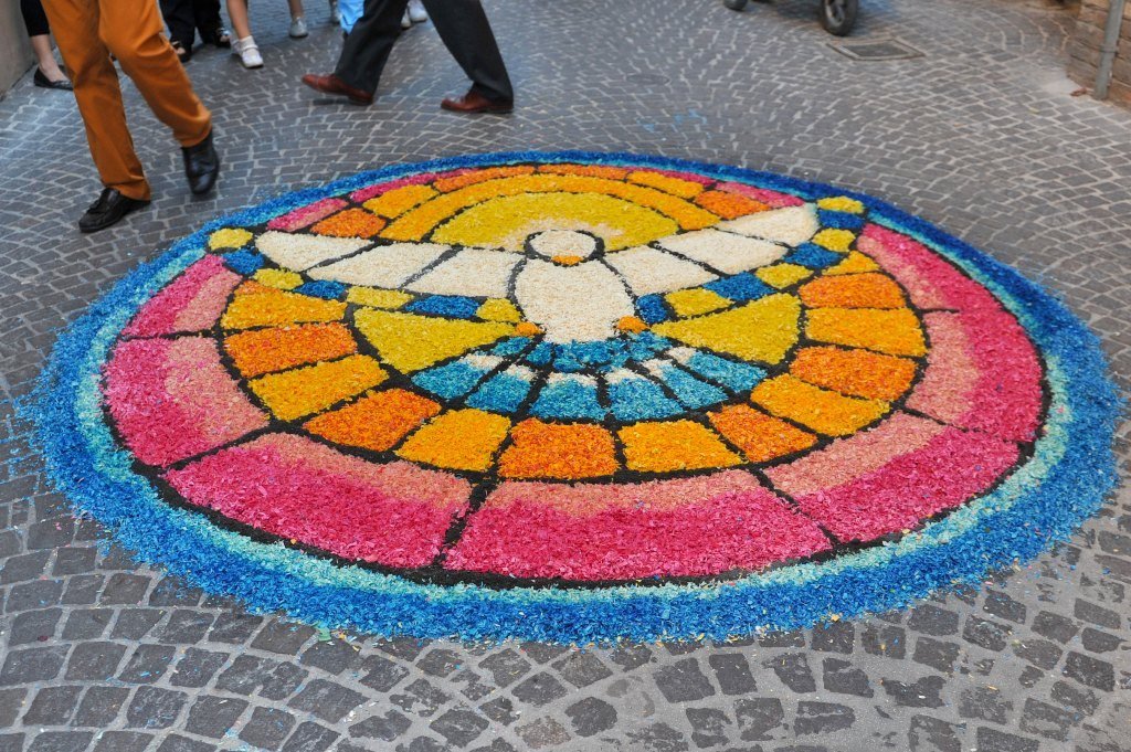 L'infiorata consiste nella realizzazione di alcuni "tappeti floreali" che riproducono disegni significativi utilizzando i soli petali di fiori. Sarà allestito anche un piccolo laboratorio didattico rivolto ai bambini che potranno realizzare dei piccoli tappeti floreali con l'aiuto dei mastri infioratori quali insegnanti.